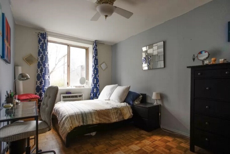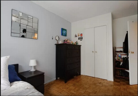 ExtraLarge bedroom with closet, AC, south facing large window, full bed, dresser, desk, chair come with.