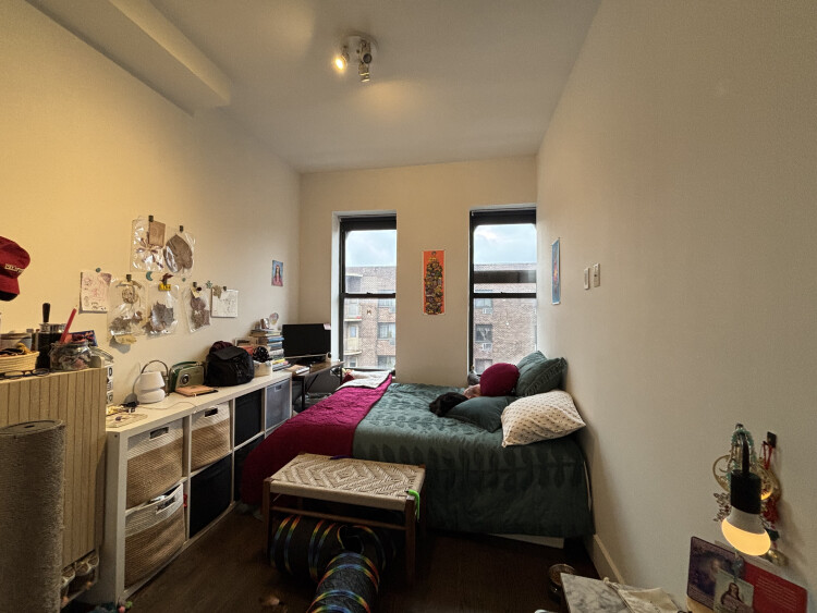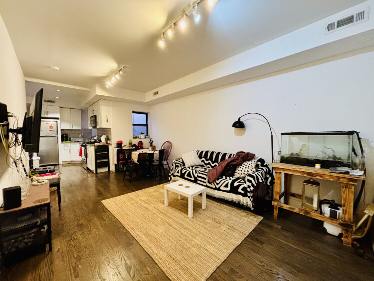 The room is fully furnished and very spacious, with hardwood floors, a double closet, and two windows with great natural light. The apartment is partially furnished and includes all main furniture and kitchen basics.