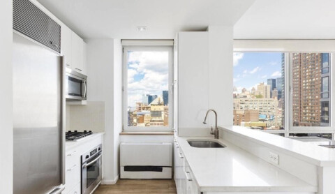 The Penthouse features stainless steel Bosch (dish washer, W/D, stove and microwave) and Sub Zero ( Fridge) appliances, white oak flooring , granite countertops in kitchen , marble bathrooms , washer/dryer in the unit , walk-in closets with white oak and glass pantries.