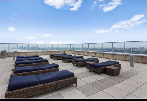 The building amenities – 24-hour concierge/valet, free daily breakfast, Complimentary fitness center, Ice skating rink, tennis court, basketball court, residents' multi-media lounge and billiards room on the 47th floor, valet services ( laundry and dry cleaning on site) , office center, movie theatre , fully-landscaped terraces/sundeck , building-wide wireless Internet system for common areas , on-site storage available , bike storage , pet friendly , valet parking available , Large indoor and outdoor lap swimming pools (added cost) , sauna, free bicycle usage , BBQ Grill available , private dog run, kids playroom indoor/ outdoor kids playground and a free cross town shuttle bus.